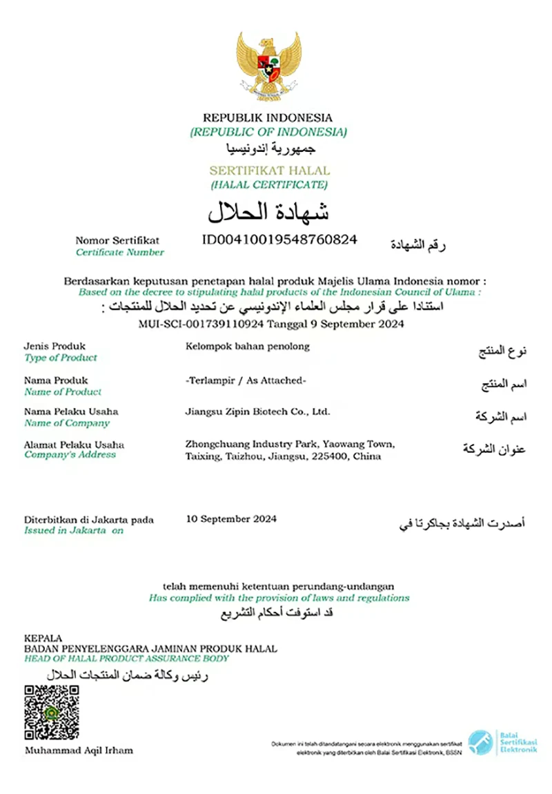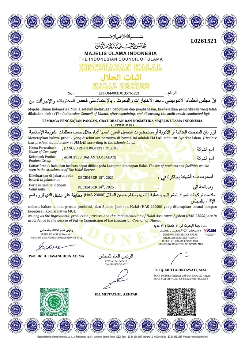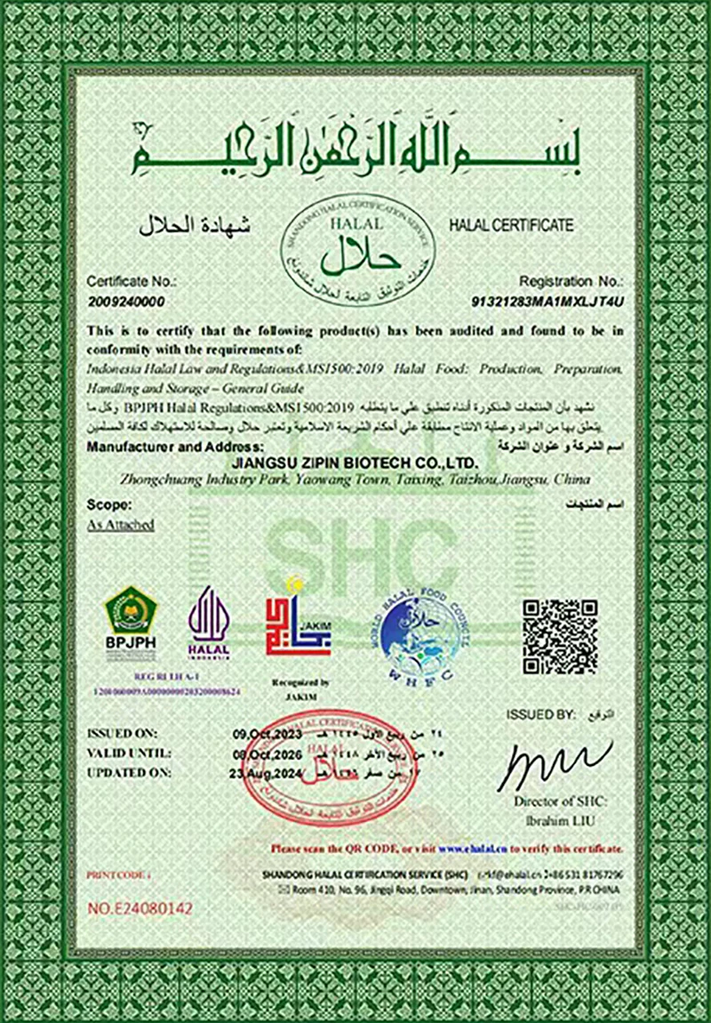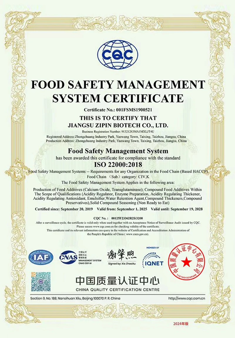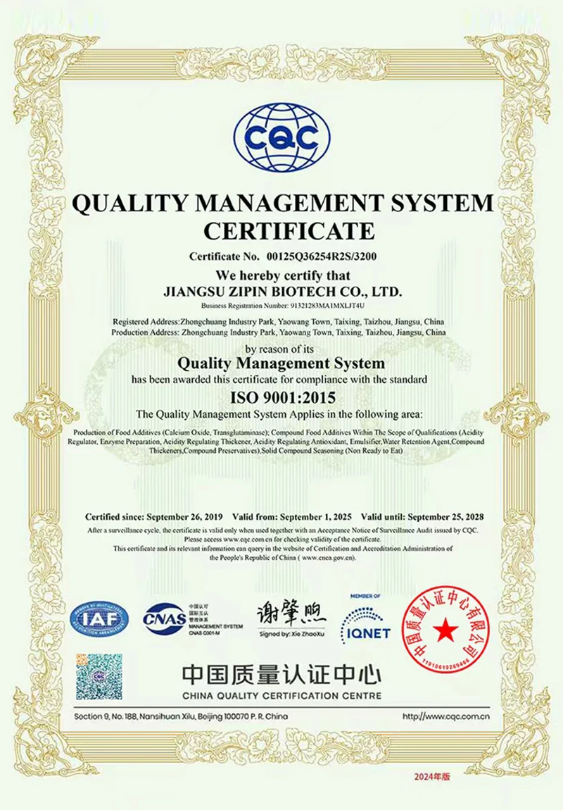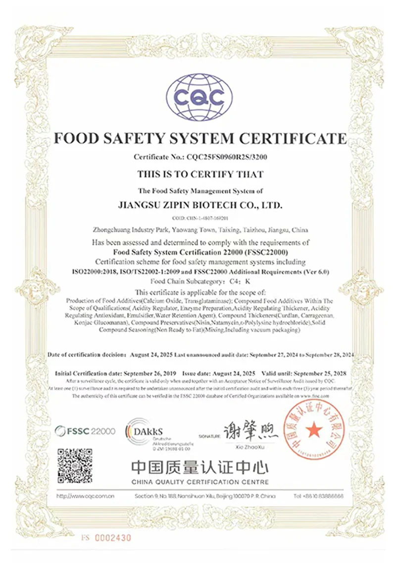 Jiangsu Zipin Biotech Co., Ltd. je bilo ustanovljeno leta 2016 in pokriva površino 20.000㎡. Kot sodobno zasebno podjetje se zdaj ukvarjamo predvsem z raziskavami in razvojem, proizvodnjo in prodajo aditivov za živila. Naši glavni proizvodi soTransglutaminaza, Curdlan, ε-polilizin, nizin, natamicin in drugi aditivi za živila.